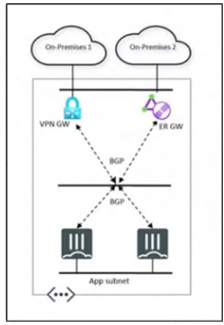 In an expanding corporation, the different branches share resources connecting to Azure through Azure VPN Gateway and ExpressRoute Gateway.