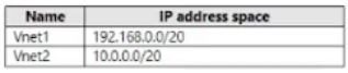 You have two Azure virtual networks in the East US Azure region as shown in the following table.
