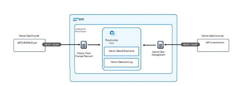The customer wants to use an SAP BTP service to synchronize the workforce person master data object between SAP S/4HANA Cloud and SAP SuccessFactors HXM Suite as part of the Hire to Retire process (for cloud deployment). They prefer a service that uses a "hub and spoke" model to enable the synchronization.